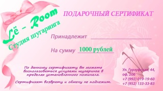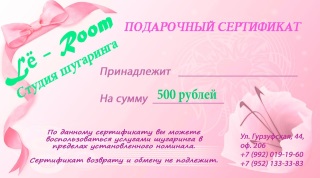 Lё- RooM – это комфортная и уютная студия с приятной атмосферой, в которой легко и весело. Вас окружит заботой и вниманием мастер своего дела , а успокаивающая музыка отвлечет Вас от процедуры.